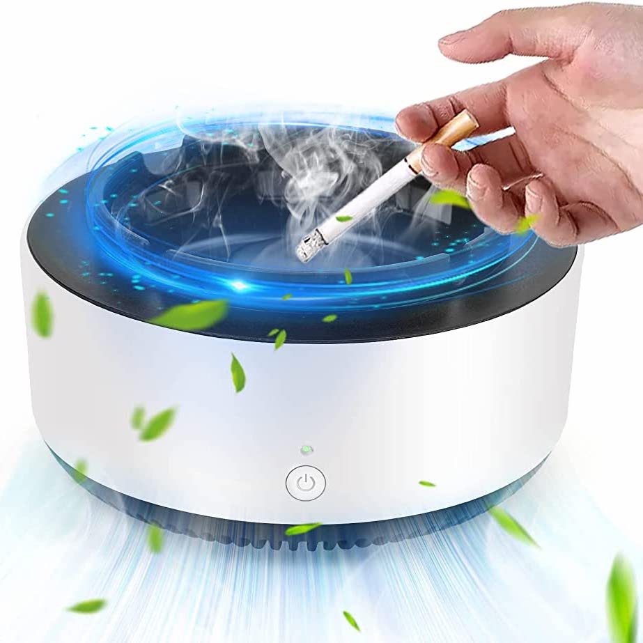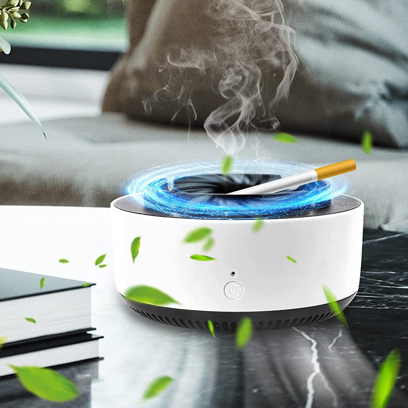 Coloca tu cigarrillo en el cenicero, pulsa el botón y el dispositivo se encargará del resto. El ventilador incorporado se activará automáticamente y comenzará a filtrar el humo y las cenizas.