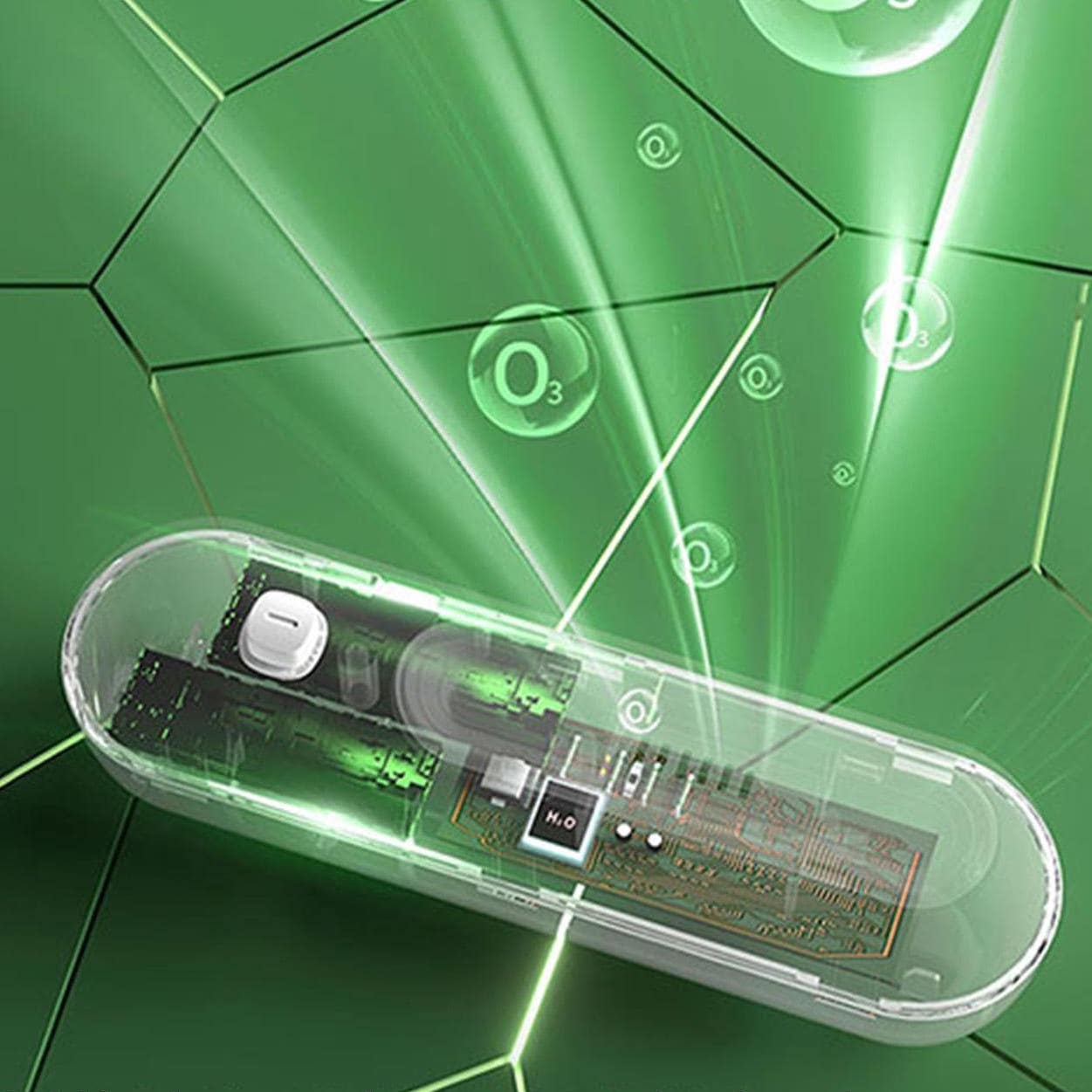 Tiene una tecnología que ioniza el oxígeno a través del método de electrólisis generando Ozono. Este esterilizará el aire y eliminará bacterias que son las causantes de los malos olores.